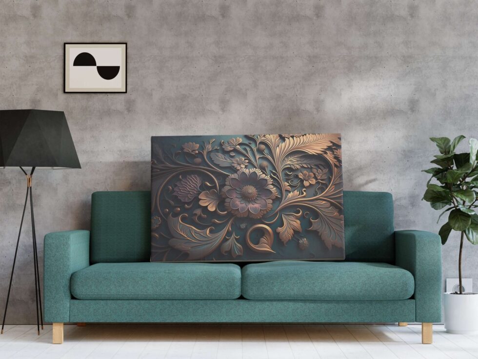 Large canvas of a blooming meadow for vibrant hotel lounges.