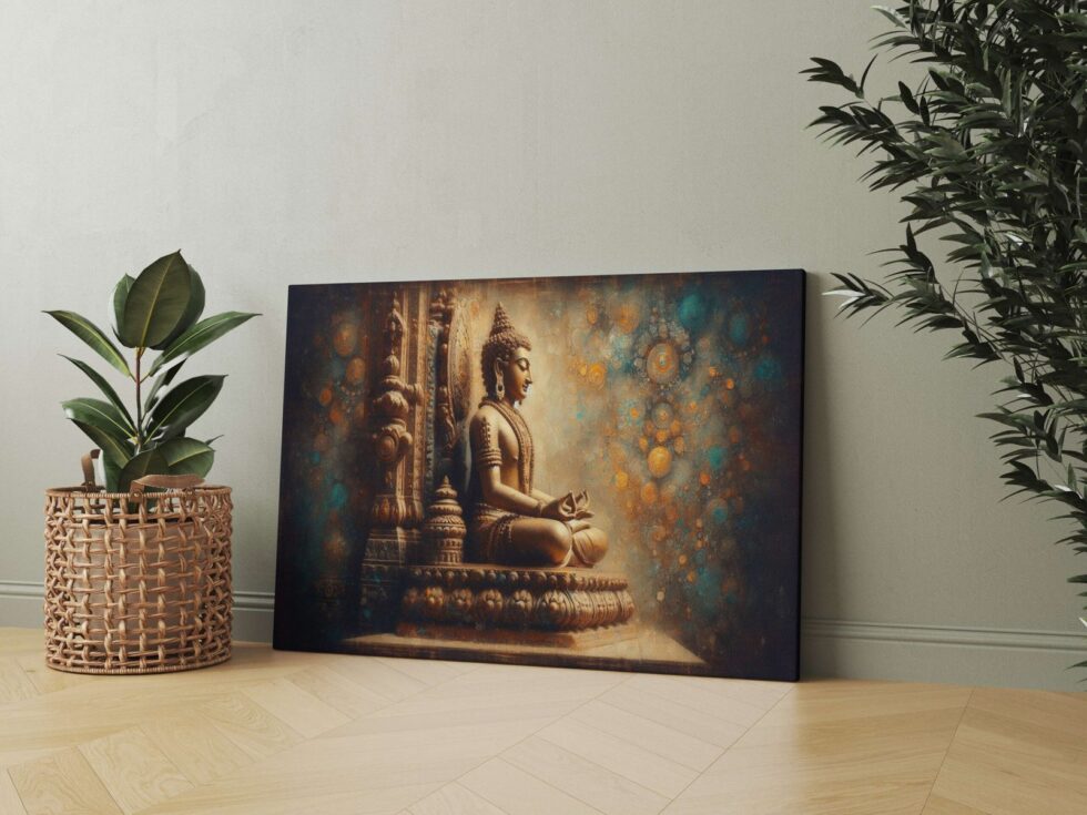 Golden Buddha artwork on canvas for a tranquil atmosphere.