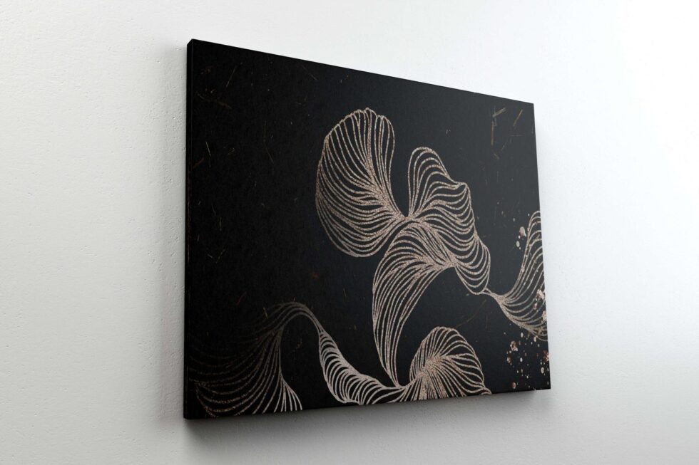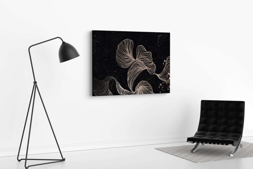 A golden round frame painting that blends seamlessly into hotel or office decor.